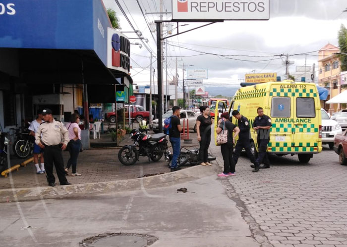 Girar a su izquierda sin poner los pide-vía por parte del cadete de un taxi, supuestamente provocó que el conductor de una motocicleta colisionara en el costado izquierdo del automotor, hecho ocurrido de los semáforos del Mercado Mayoreo, dos cuadras al Lago, Managua.
