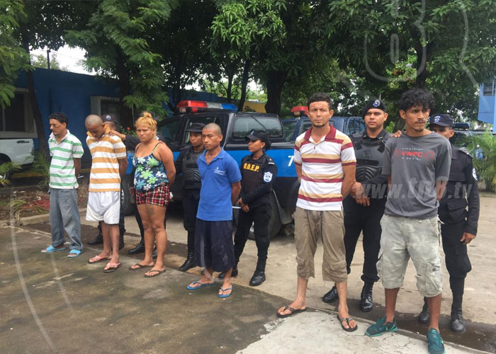 “En la vía publica fueron detenidos Modesto Antonio Núñez Zepeda de 20 años y José Leonardo Martínez Zepeda, alias 'Pichirilo', de 22 años, quienes a bordo de bicicleta y con machete en mano intimidan a una mujer de 38 años, y la despojan de un celular valorado en 3,000 córdobas, un brazalete valorado en 700 córdobas, un anillo de acero valorado en 200 córdobas, una pulsera valorada en 150 córdobas y 300 córdobas en efectivo. Los objetos fueron recuperados, también fue ocupada la bicicleta en que operaban y el machete con que intimidaban a las víctimas en el sector de comarca La Grecia N° 3”, dijo el jefe policial.