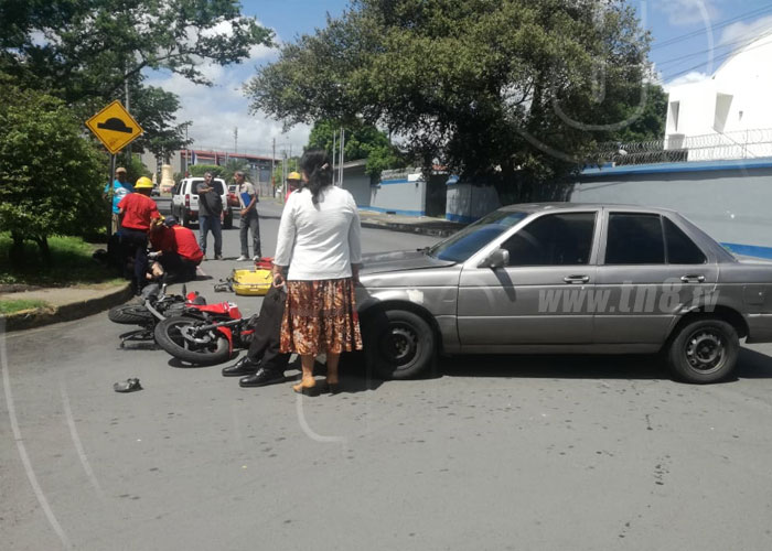 Fue la mañana de este lunes que Michael González, desplazándose en su motocicleta en dirección norte-sur, impactó la parte delantera de un vehículo Nissan conducido por William Prado, quien al parecer irrespetó una señal de Alto en una calle de Managua.