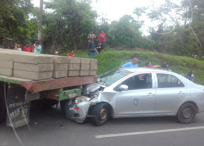 Milagrosamente el conductor y pasajeros de un vehículo taxi con placa GR 118, resultaron ilesos este viernes después de colisionar con un camión que transportaba piedras canteras. El hecho sucedió en la Carretera Granada-Masaya.