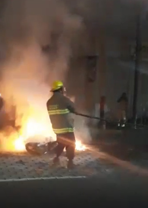 Reducida a cenizas y chatarra quedó una motocicleta, que se incendió tras colisionar contra un carro que supuestamente invadió el carril del motociclista.