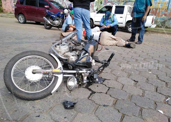 Con lesiones de consideración terminó el señor César Rodríguez de aproximadamente 55 años de edad, al impactar este martes contra un microbús en el barrio San Luis, en Managua.