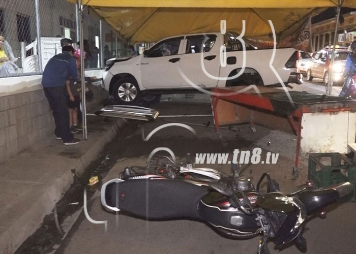 Un adolescente circulaba de sur a norte con dos menores de edad presuntamente perdió el control del vehículo, se pasó llevando dos motocicletas, toldos y posteriormente se estrelló contra el muro de la clínica Médica Previsional, en la avenida central de la ciudad de Estelí.