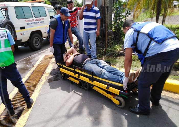 Fue auxiliado por miembros de la central de ambulancia del Ministerio de Salud, quien presentaba golpes en el rostro y diversas partes del cuerpo. En condición estable fue remitido al Hospital Alemán Nicaragüense.
