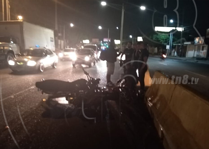 El imprudente intento del conductor de una motocicleta de pasar por una zona no permitida para vehículos, provocó que otro motociclista lo golpeara por la parte trasera de su moto. Éste resultó con un golpe en su pie y daños materiales en ambos vehículos, hecho ocurrido el jueves de los semáforos del Hospital del Niño, dos cuadras al este, en Managua.