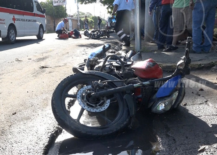 Al lugar del accidente asistieron una unidad de la Cruz Roja Nicaragüense y una unidad del Benemérito Cuerpo de Bomberos, los cuales trabajaron en conjunto para auxiliar y posteriormente trasladar a los motociclistas, los cuales resultaron con lesiones en sus extremidades inferiores.