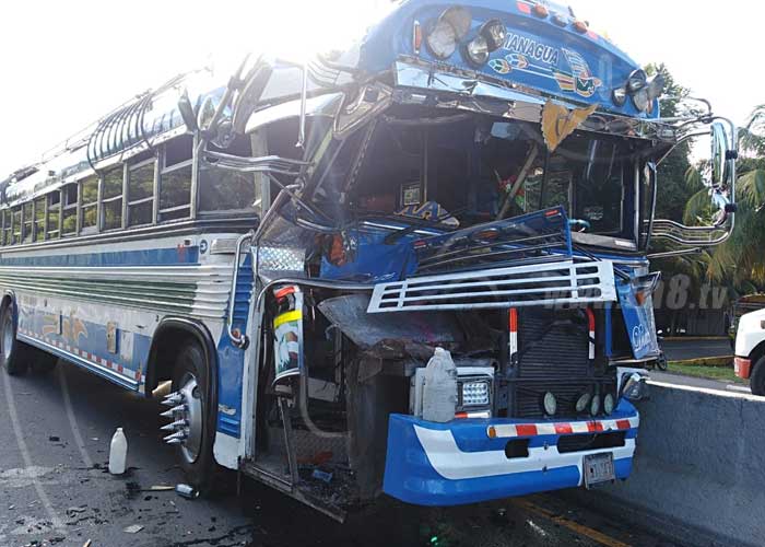 Tremendo susto se llevaron este viernes 56 pasajeros, conductor y ayudante de un autobús placa MT 047, ruta Matagalpa-Managua, al sufrir un accidente de tránsito en el kilómetro 14.5 de la Carretera Panamericana Norte, jurisdicción de Tipitapa.
