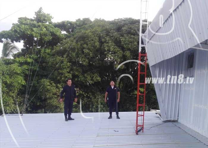 La tarde de este martes se reportaron fuertes precipitaciones con tormenta eléctrica en la Costa Caribe de Nicaragua, producto de la misma, un rayo cayó en la torre ubicada en el techo de la empresa acopiadora de jaiba, Caribean Blue.