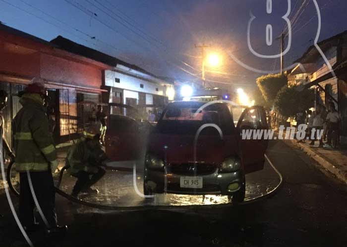 Un taxi ardió en llamas en una de las calles de Chinandega