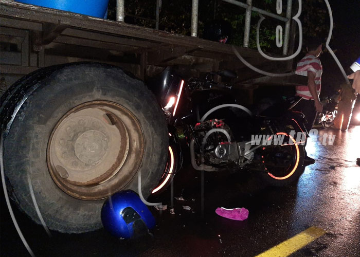 El hechos ocurrió frente al cuadro de béisbol, en la comunidad de Muhan, sobre la carretera que conduce Villa Sandino hacia El Rama, cuando el motociclista de nombre Frederick Alfonso Espinoza de 28 años, quien viajaba con su pareja como acompañante de nombre Ivania Liseth Cruz de 24 años y una menor de edad, impactarán contra la parte trasera de un camión lechero placa 274 316, que se encontraba estacionado, quedando debajo de las llantas, resultando la pareja con graves lesiones en su cuerpo, mientras una menor de edad afortunadamente salió ilesa.
