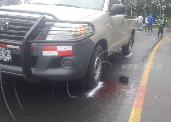 El hecho se dio cuando la camioneta marca Toyota Hilux, color dorado, placa M215589, propiedad de Compañía Cervecera de Nicaragua S.A, conducida por el señor Raúl Enrique Gutiérrez Jarquín de 53 años, circulaba en dirección de oeste a este, y el conductor de la moto circulaba de este a oeste, conducido por José Alfredo Rizo Hernández, de 31 años.