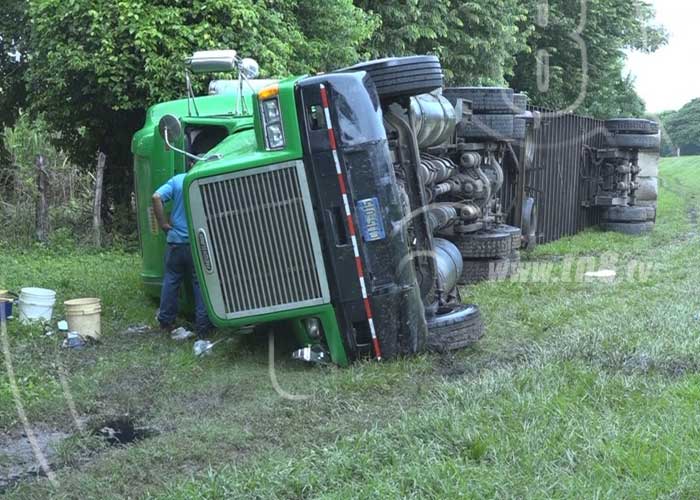 Una rastra con placas C115 015 de origen salvadoreño se dio vuelta en el kilómetro 70.5 de la carretera Nandaime–Rivas.