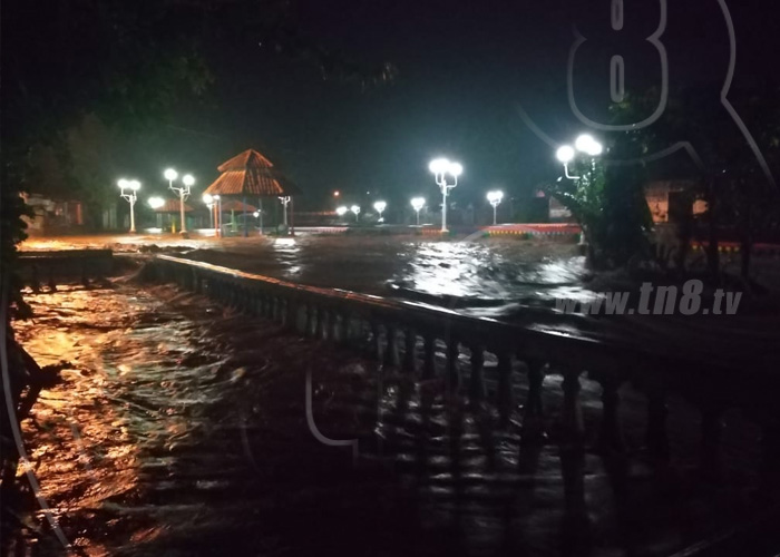 Debido a la fuerte lluvia de los últimos días, causados por el sistema de baja presión que se encuentra sobre el territorio nacional, el Río Masachapa del municipio San Rafael del Sur se desbordó, inundando el malecón y a la vez dejando viviendas anegadas.