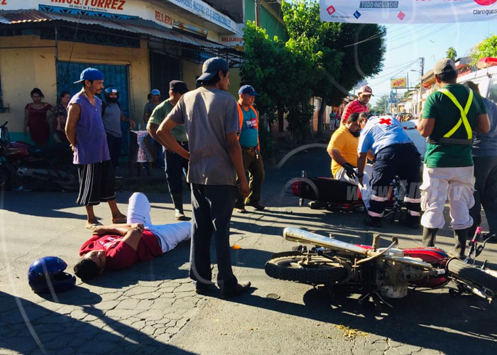 Tras el fuerte impacto ambos motociclistas terminaron tendidos en el pavimento, al parecer las causas del accidente de tránsito fue porque uno de los motociclistas desatendió la señal del alto en la esquina de la Pizza Hut, en la ciudad de Chinandega.