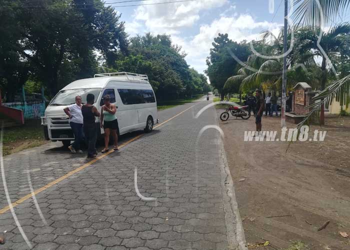 Las calles de la Isla de Ometepe una vez más son el escenario de accidentes de tránsito, donde afortunadamente en este hecho solamente se registraron lesiones leves en el motociclista y daños en la carrocería del vehículo bus.