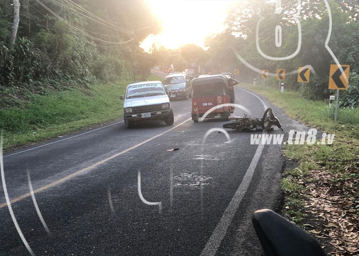 Francisco Ottoniel García Cerda de 33 años de edad, perdió la vida instantáneamente al perder el control de su motocicleta placa CZ 16340 e impactar contra el pavimento, en la rotonda conocida como la T en Diriamba.