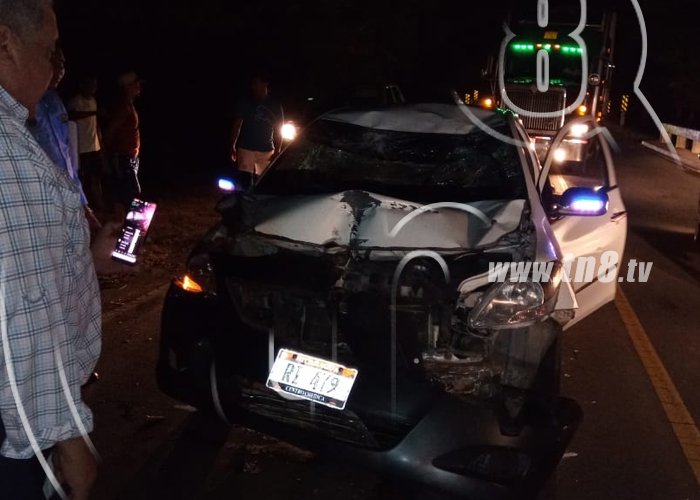 La falta de señalización de un carretón de caballos y la alta velocidad pudo ser la causa de un accidente de tránsito registrado al caer la noche de este domingo, en el km 116 1/2 de la carretera Panamericana sur, en el departamento de Rivas.