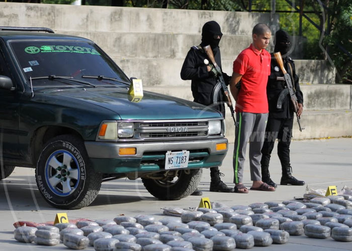 En conferencia de prensa la tarde de este lunes, el Comisionado Mayor Carlos Martínez Leytón, Jefe de la Policia Nacional en Nueva Segovia informó de la captura del joven Carlos Sergio Cruz Tórrez, de 20 años, la ocupación de una camioneta y 363 libras de marihuana.