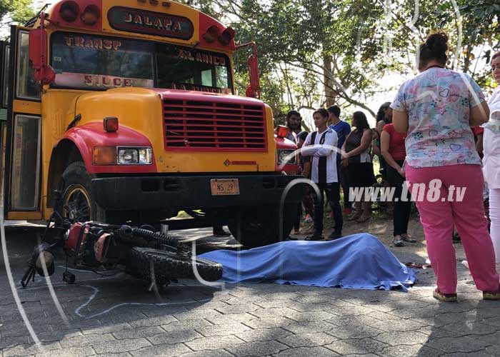 A eso de las 2:20 minutos de la tarde, en la entrada Cruz sin Brazo, en el kilómetro 306 de la carretera a Teotecacinte, en el municipio de Jalapa, falleció el ciudadano Lesther Maguiber Pineda Acuña, de 26 años de edad, luego de verse involucrado en un accidente de tránsito entre la motocicleta que él conducía y un bues de transporte colectivo.