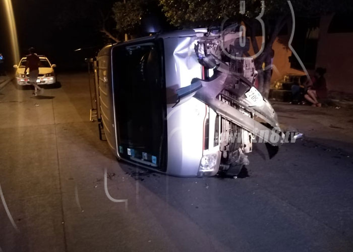 Se presume que un motociclista se les atravesó este lunes en el camino y el conductor del vehículo realizó una maniobra para evitar colisionarlo, provocando que este terminara volcado, en el barrio reparto Schick, en Managua.