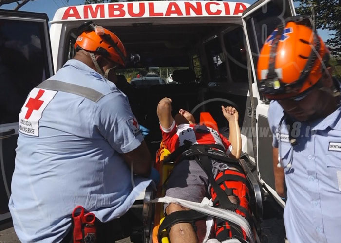 Enyus Yamil Salgado Rivas de 21 años de edad originario de la comunidad Pueblo Viejo, Matagalpa, fue trasladado a un centro hospitalario por miembros de la Cruz Roja para recibir atención médica por los galenos de turno.