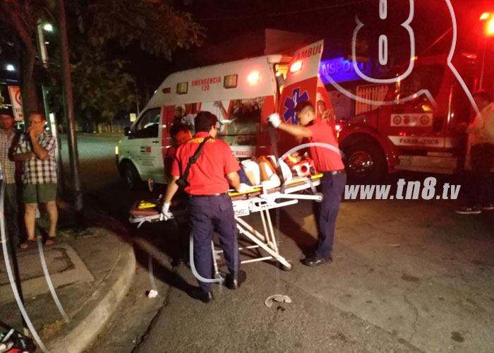 Al lugar se hicieron presente técnicos en primeros auxilio del Benemérito Cuerpo de Bomberos, quienes estabilizaron a los pacientes y rápidamente los trasladaron al hospital Fernando Vélez Paiz.