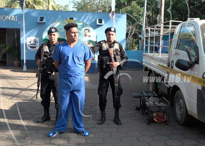 “Como resultado de las investigaciones, la Policía Nacional capturó al sujeto, Holdin Manuel Esquivel Trujillo, de 21 años, quien ingresó a la casa asesinando a Roger Rosalío Medina Toruño, con arma cortopunzante (cuchillo), seguidamente sustrajo dinero en efectivo en moneda nacional y extranjera, dólares estadounidenses, así mismo, robó un vehículo camioncito marca KIA, placa LE 23528, dos motobombas marca Honda, huyendo del lugar”, informó el Comisionado Mayor Fidel Domínguez, jefe de la Policía Nacional de León.
