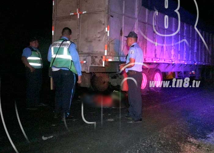 “Un accidente de tránsito donde está la pérdida de una vida más, estamos todavía investigando, el fallecido aparentemente circulaba contra la vía, venía un cabezal de oeste a este y como resultado se dio la colisión, lamentando este hecho”, relató el subcomisionado Néstor Gómez, jefe del área de tránsito de la Policía Nacional de León.
