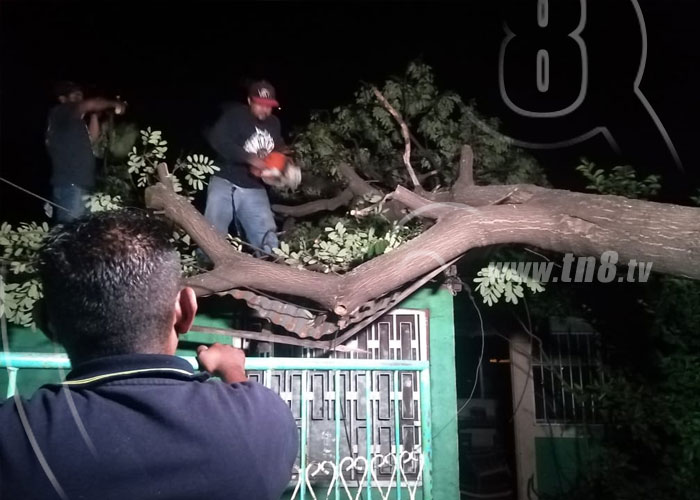 Tremendo susto se llevó una familia al caer un frondoso árbol sobre su casa, afortunadamente lograron salir rápidamente y no hubo pérdidas humanas más que los daños para la vivienda, el hecho se dio en la colonia Cristian Pérez en la ciudad de Managua.