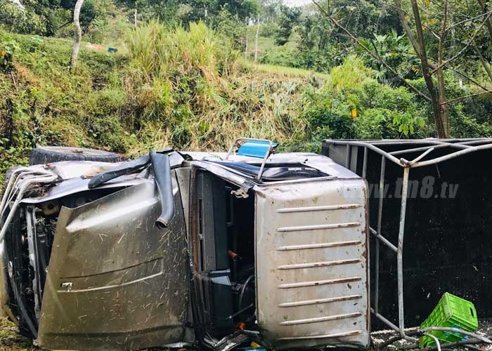 Camión impacta camioneta y provoca su vuelco en Villa Sandino