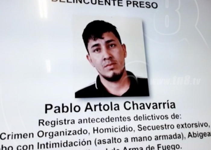 Pablo Artola Chavarría registra antecedentes delictivos de crimen organizado, homicidio, secuestro extorsivo, robo con intimidación, asalto a mano armada, abigeato y tenencia ilegal de arma de fuego.