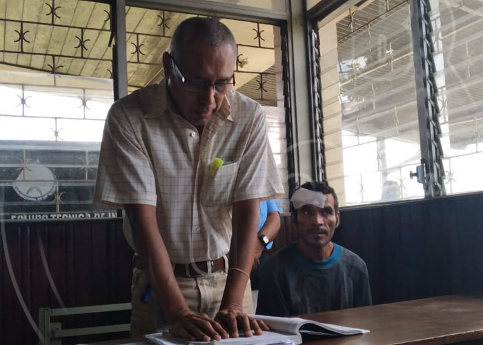 El acusado sangraba abundantemente por los que fue trasladado a un centro asistencial para suturar su herida, luego de ser atendido fue presentado a la audiencia ante la juez Socorro López, del juzgado de distrito penal de audiencias donde se le leyó la acusación en su contra.