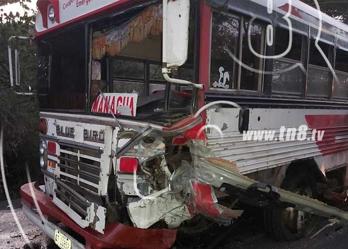 Un carro marca Dodge color gris placa M-302578 colisionó contra un autobús de transporte colectivo color blanco con rojo placa CT-11852 propiedad de Jacqueline Trejos, el cual era conducido por César Álvarez.