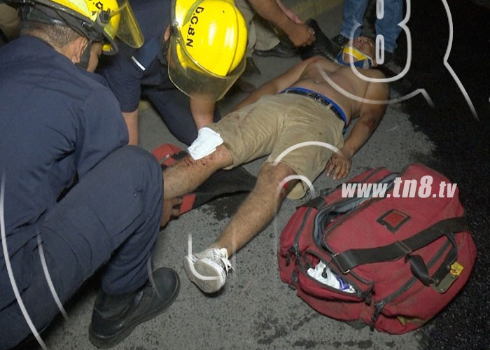 Al lugar se hicieron presente miembros de la Dirección General de Bomberos de Nicaragua, quienes brindaron atención prehospitalaria al lesionado que presentaba policontusiones en diferentes partes del cuerpo, un trauma cervical y heridas en ambas piernas. Tras ser estabilizado el motociclista fue trasladado al Hospital Alemán Nicaragüense por técnicos en primeros auxilios de la Cruz Roja.