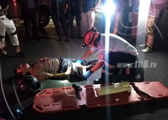 El conductor y la acompañante de una motocicleta resultaron con lesiones al ser brutalmente impactados por el conductor de un taxi, quien aparentemente irrespetó la luz roja de los semáforos de la Plaza las Victorias, ocasionando el percance vial donde se llevó la peor parte el conductor de la moto, quien resultó con una fractura en su pie derecho.