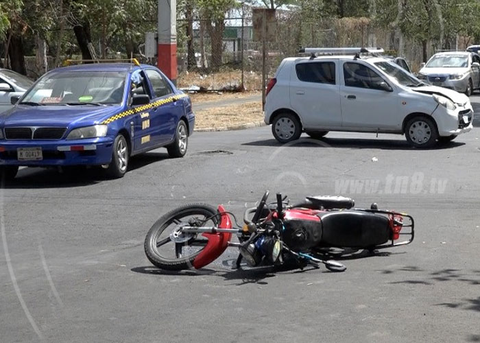 Ubicándose por medio de GPS en Managua, la ciudadana Cinthia Joseling Herrera Aráuz, quien conducía un vehículo Suzuki color blanco con placa ES 26082, no se percató este miércoles de una señal de Alto e impactó a un motociclista.