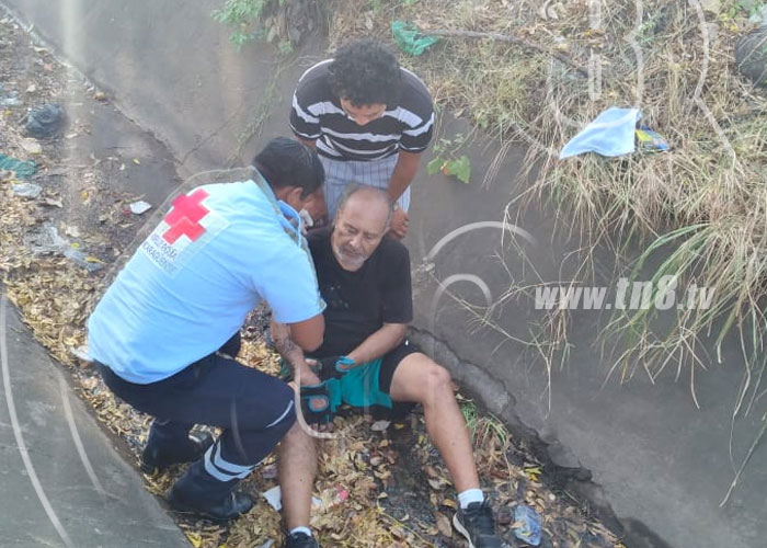 Pasado unos minutos una ambulancia de la Cruz Roja Nicaragüense se hizo presente al lugar de los hechos, los técnicos en emergencias médicas atendieron al lesionado, ellos luego de estabilizarlo utilizaron la técnica de rescate de persona para poder sacarlo.
