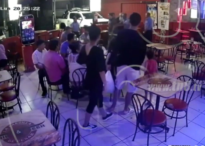 En un video conseguido por TN8, se puede ver el momento exacto en que este hombre fue aprehendido por oficiales de la Policía Nacional, mientras éste se encontraba en un bar del Distrito II de Managua en horas de la noche del lunes.