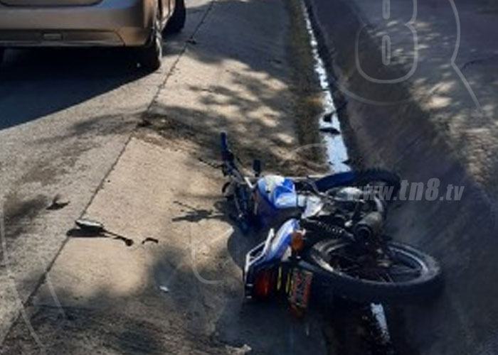 Balbino de Jesús Sánchez Gutiérrez, de 42 años y su esposa María de Jesús García de 38 años, resultaron lesionados este jueves tras impactar la moto en que viajaban con el costado izquierdo de un taxi, terminando su marcha en una canaleta ubicada en el kilómetro 11 de la Carretera vieja a León.
