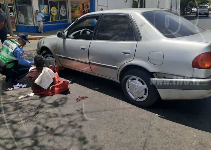 La señora Eva Narváez de 72 años, resultó severamente lesionada este martes cuando intentaba cruzar una calle y fue embestida de manera repentina por un conductor, quien no la visualizó en el sector de La Racachaca, en Managua.