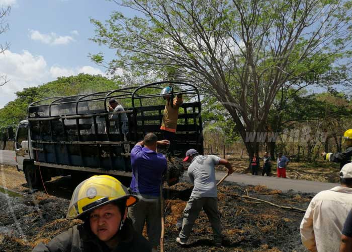 Un camión cargado con unas 100 pacas de alimentos para ganado que era transportado la mañana de este miércoles 15 de abril, se incendió en el sector de Cuisala, Km 124 sobre la carretera que conduce de Juigalpa a Managua.