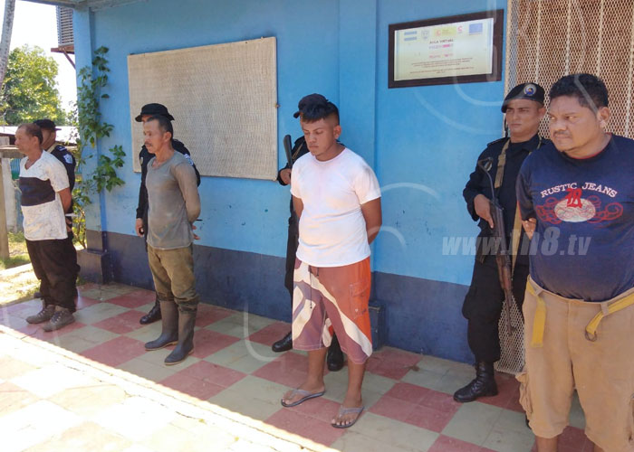 El jefe policial presentó a los cuatro sujetos señalados que fueron detenidos con el cargamento que supera los 70 mil dólares norteamericanos que corresponden a los nombres de: Eykel Antonio Wilson Sequeira de 19 años, Holman Antonio Morales Obando de 50 años, Rodolfo Antolín Wilson Martínez de 41 años y Santos Mariano Lazo Landeros de 57 años de edad.