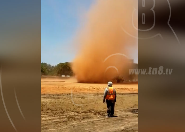 En la zona de Ciudad Belén, en Managua, se dio un incidente poco común y es que este lunes se vio un torbellino que levantó polvo en una zona en que se hacen trabajos de remoción de tierra.
