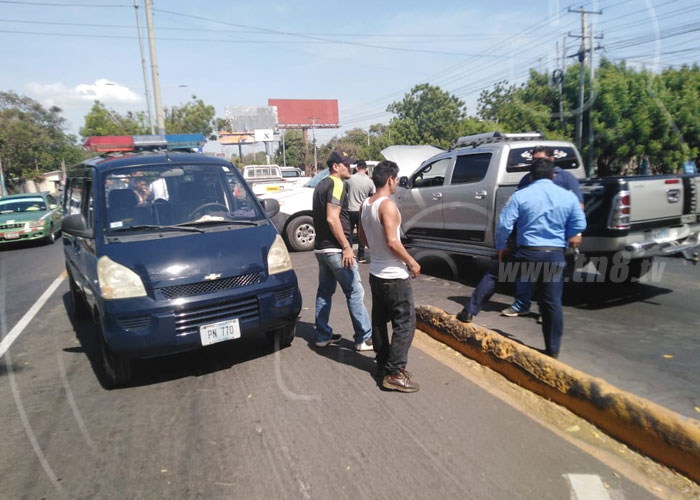 Una aparatosa colisión entre dos camionetas al costado este de la Rotonda de la Fuerza Aérea, Carretera Norte, Managua, dejó como resultado a uno de los conductores lesionados, hecho ocurrido este martes.