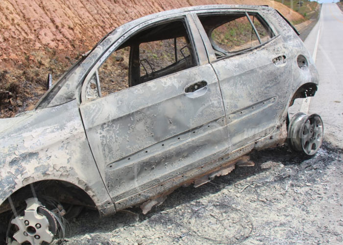 Una unidad de la Dirección General de Bomberos de Bluefields llegó al lugar, donde el vehículo ya se había convertido en chatarra producto del fuego que devoró en instantes el medio de transporte.