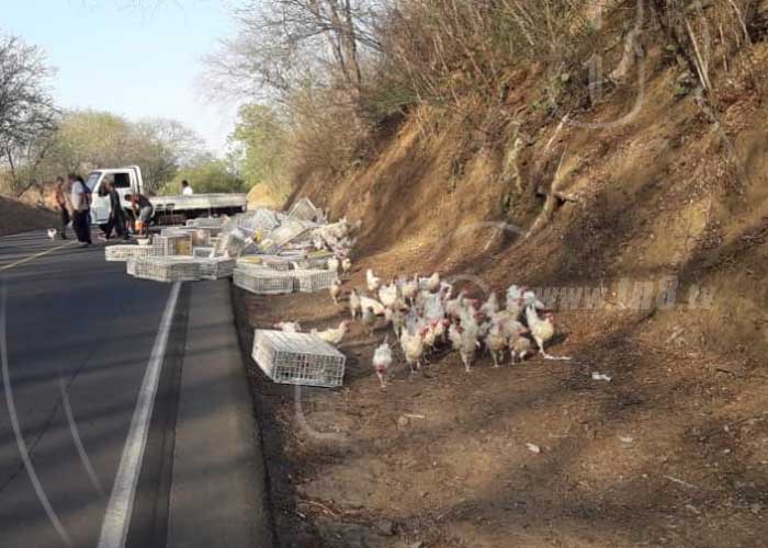 Ya casi cayendo la noche de este miércoles 29 de abril, el señor Francisco Mora de 48 años de edad, conducía un camión cargado de gallinas desde Diriamba hacia Buena Vista, cuando repentinamente perdió el control del camioncito volcándose sobre la vía, arrastrándose por casi cinco metros sobre el pavimento.