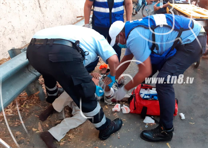 "El señor presenta golpes y heridas, afortunadamente no hay fractura, pero para evitar complicaciones lo estamos trasladando a un centro medico", dijo Jimmy Gómez, técnico de la Cruz Roja Nicaragüense.