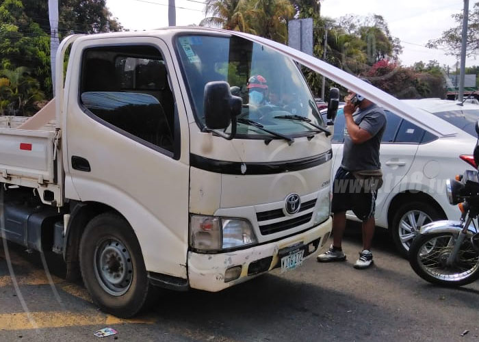 El joven circulaba en una motocicleta marca Pulsar modelo NS, de sur a norte, mientras ella en el camioncito marca Toyota, placa M 176 172, quien salió de una ferretería ubicada en ese sector y pretendía incorporarse en el carril que conduce hacia Masaya.