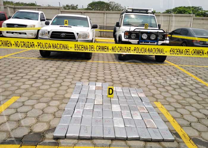 El comisionado continuó refiriendo: "En inspección realizada al vehiculo Toyata Badoo con número de placa M 288 789, se detectó compartimientos ocultos (caleta) en la parte inferior de los asientos traseros, conteniendo 85 paquetes en forma rectangular envueltos en cinta adhesiva, conteniendo sustancia color blanca que al realizar la prueba de campo dio a cocaína", finalizó.