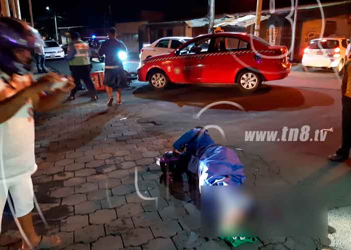 Un motociclista repartidor de comida rapida resultó lesionado tras ser impactado por un taxi propiamente en los semáforos de donde fue el Cine Salinas, en Managua, ambos conductores se culpaban mutuamente de haber irrespetado la luz roja de la señalización de tránsito.